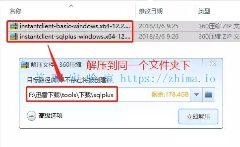 instantclient-basic-windows.x64-12.2.0.1.0.zip和instantclient-sqlplus-windows.x64-12.2.0.1.0.zip两个压缩包(须事先注册并登录Oracle账户);